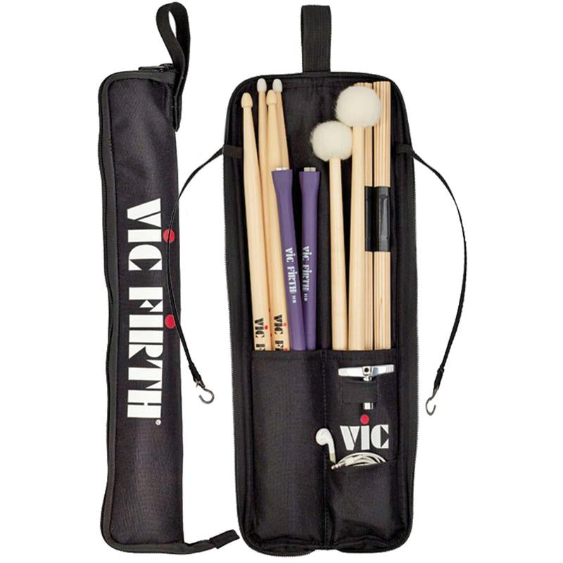 - Features a hook-and-strap system for for secure suspension from the floor tom or snare